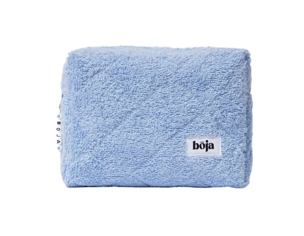 Махровая косметичка в идеально голубом оттенке для любителей нежных расцветок. Внутри идет подклад из голубой клетки.