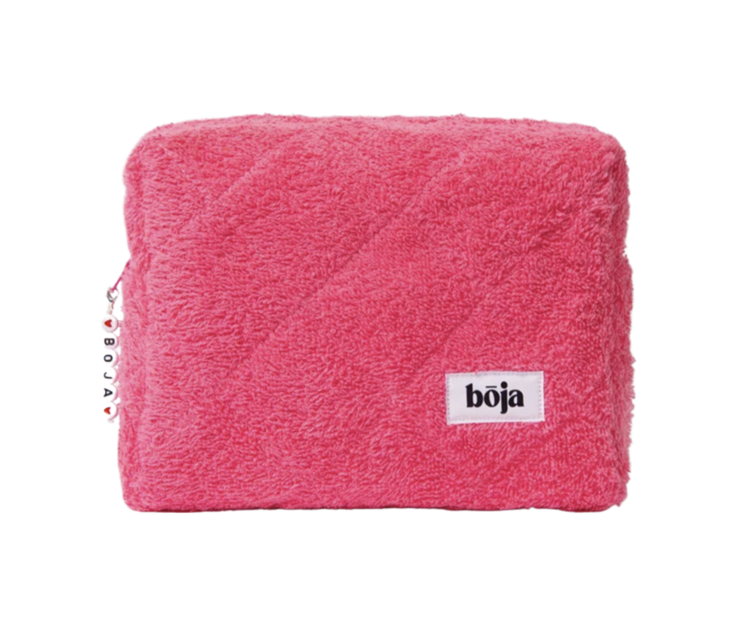 Ярко-розовая махровая косметичка для любителей ярких красок и уюта. Внутри идет подклад из ярко-розовой клетки.