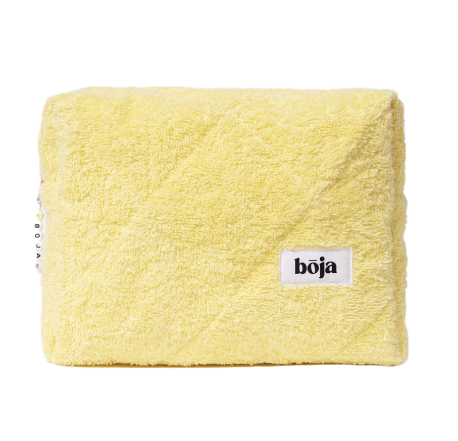 Трендовая косметичка из махровой ткани в ярком и очень красивом солнечно-желтом оттенке. Внутри идет подклад из розовой клетки.