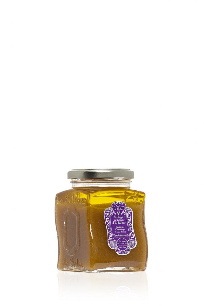Сахар для гоммажа обладает успокаивающими свойствами, возобновляет циркуляцию и пробуждает здоровый цвет кожи. После нанесения Сахарного гоммажа на распаренную влажную кожу тело избавляется от отмерших клеток, кожа увлажняется, светится и излучает здоровье.
